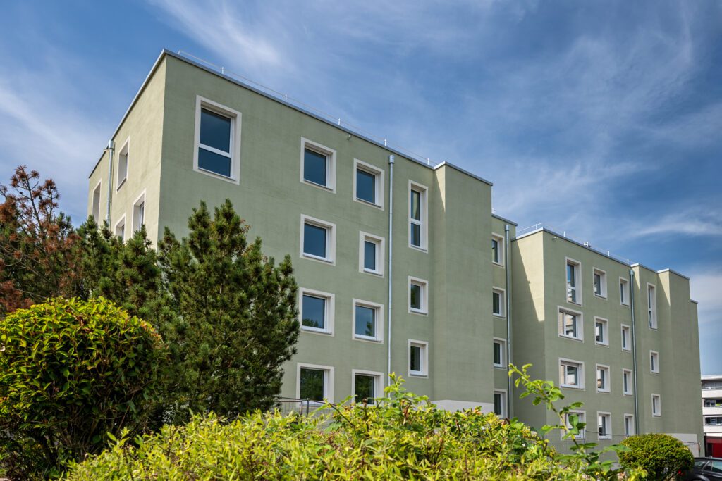 Nach einer rund dreijährigen Sanierungsphase hat die Kreisbau Tübingen eine umfangreiche Sanierungsmaßnahme in der Rottenburger Mechthildstraße erfolgreich abgeschlossen. Im Zuge des Vorhabens ist es gelungen, die energetische Optimierung der Gebäudesubstanz mit einer Erweiterung des Wohnraumangebots zu verbinden. Durch die Aufstockung der obersten Etage konnte die Anzahl der Wohnungen von 17 auf 20 erhöht werden. Gleichzeitig wurde die Energie-bilanz des Bestandsbau durch zahlreiche Maßnahmen verbessert. Nun weist das Gebäude den Energieeffizienzstandard KfW 55 auf. In diesem Zuge erhielten alle Wohneinheiten unter anderem neue Fenster, Türen und eine hochwertige Badausstattung. Fertigstellung: April 2022
