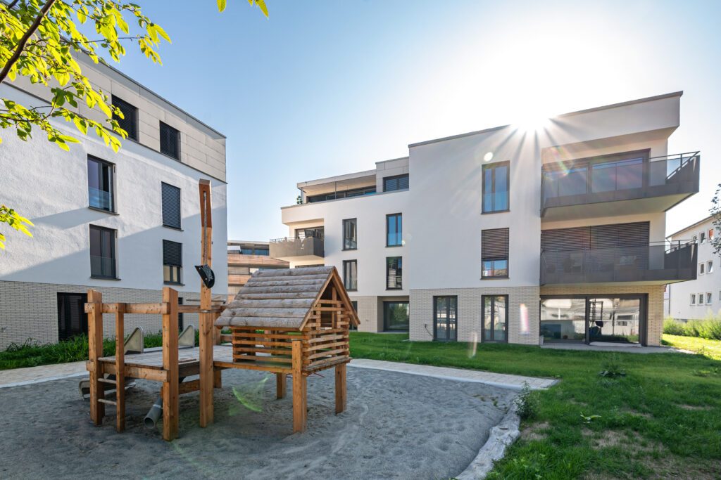Im Herbst 2021 fiel der Startschuss für ein weiteres ambitioniertes Bauprojekt der Kreisbau Tübingen: In der Saint-Claude-Straße in Rottenburg am Neckar entstand ein viergeschossiger Neubau sowie ein sechsgeschossiges Punkthaus, die mit 19 öffentlich geförderten und 16 frei finanzierten Wohnungen insgesamt 2.719 Quadratmeter Wohnfläche bieten. Der viergeschossige L-förmige Neubau beinhaltet 24 der insgesamt 35 Wohnungen, während das Punkthaus weiteren 11 Wohneinheiten Platz bietet. Mit einer attraktiven Mischung aus kleinen sowie großen Wohneinheiten in Größen von 2- bis zu 5-Zimmer-Wohnungen ist schon vor Beginn der Vermietungsphase eine gut durchmischte Bewohnerstruktur gesichert. Mit dem Einbau von Personenaufzügen wird ein barrierefreier Zugang zu allen Wohneinheiten ermöglicht – ein Plus für die späteren Bewohner aller Altersgruppen. Die Konzeption der Bauten erfolgt im Energieeffizienzstandard KfW 55. Die ökologisch orientierte Ausrichtung der Bautenwird durch den Einsatz eines nahegelegenen Blockheizkraftwerks der Stadtwerke Rottenburg abgerundet, das unter anderem auch das benachbarte Wohnensemble „108 Grad“ mit Strom und Wärme versorgt. Fertigstellung: August 2023